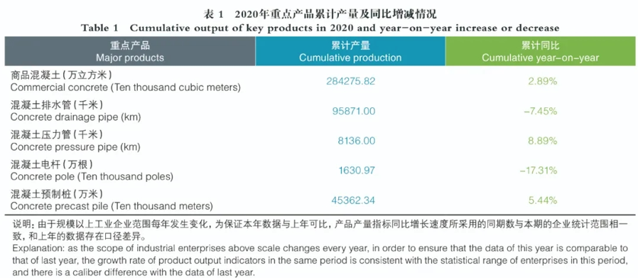 In 2020, the cumulative output of key products in the industry, such as commercial concrete, concrete pressure pipes and precast concrete piles, increased year-on-year and reached an all-time high (see table 1).