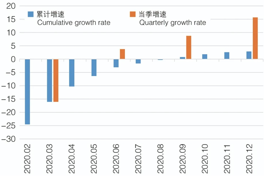 Figure 2 Cumulative investment in 2020 and year-on-year growth rate of investment in the current quarter (unit:%)